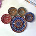 Transform your dining experience with this stunning Bohemian Mandala Ceramic Bowl & Plate Set from The Decor Paradise. This exquisite 5-piece collection features 4 deep serving bowls and 1 matching decorative plate, each adorned with intricate hand-painted geometric mandala patterns in vibrant blue, coral red, orange, and green hues.