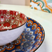 Inspired by traditional Bohemian artistry, every piece showcases mesmerizing concentric circles and floral motifs that radiate from the center, creating a captivating visual harmony. Crafted from premium food-safe ceramic with a glossy finish and contrasting dark rim, these pieces blend artistic beauty with practical functionality. Perfect for serving rice, curries, snacks, soups, salads, or as decorative display pieces.