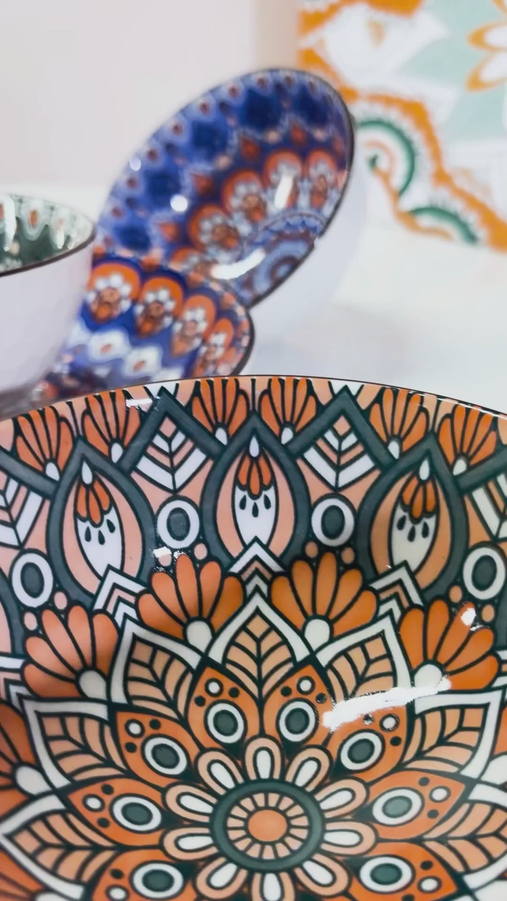 Microwave and dishwasher safe for modern convenience. Each bowl holds approximately 400ml, ideal for individual portions or sharing. The matching plate serves as an elegant centerpiece or serving tray. This set represents the perfect fusion of traditional mandala symbolism—representing unity, balance, and prosperity—with contemporary dining needs. Whether for daily meals, entertaining guests, or special occasions, this collection brings bohemian elegance and positive energy to your table.