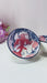 Glossy finish with navy rim – elegant coral-red and cream color palette