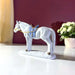 Elevate your décor with the Azure Majesty Ceramic Horse Sculpture, an artisanal masterpiece from The Decor Paradise. Standing 20 cm tall, 26 cm long, and 7 cm wide, this elegant horse is cast in premium high-fired ceramic and hand-glazed in a serene ivory base. The richly detailed saddle features a soft sky-blue enamel finish, accented with gleaming gold filigree and a delicate gold cord rein that drapes gracefully around its neck.