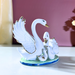 At 21.5 cm height and 17 cm length, this charming family scene sits atop a serene blue-green water base, symbolizing love, unity, and prosperity. Perfect for living room coffee tables, bedroom dressers, office desks, dining room sideboards, or meditation spaces. In Vastu tradition, swan pairs represent marital harmony, spiritual wisdom, and positive energy flow.