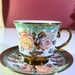 Crafted from premium food-grade ceramic, each piece boasts exceptional durability while maintaining an elegant lightweight feel. The cups feature a comfortable 220ml capacity - perfect for your favorite tea, coffee, or hot beverages. The intricate hand-painted rose motifs against the refreshing mint green background create a charming vintage aesthetic, while the gold-plated rims and handles add a touch of refined luxury.