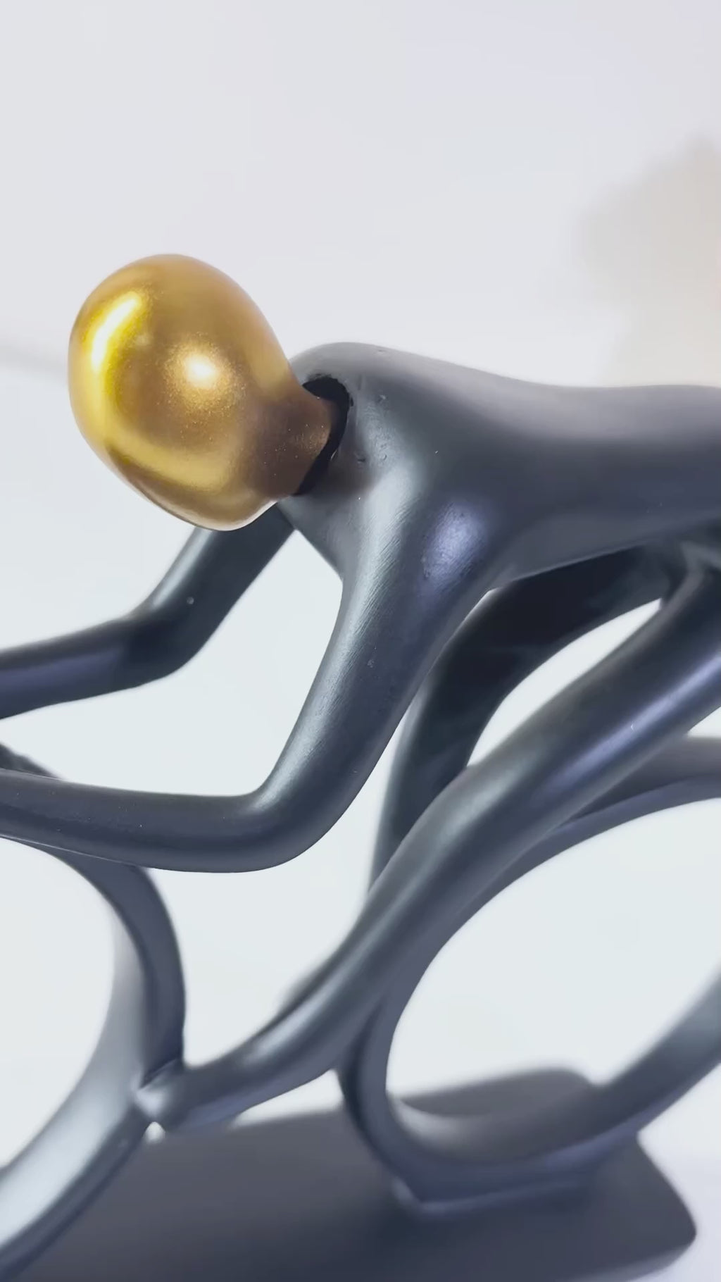 Transform your space with this stunning handcrafted resin cyclist figurine featuring dynamic movement & luxurious black-gold finish. Perfect sports home decor for living room, office desk, study & bedroom styling. Measuring 22.5cm x 18cm x 5cm, this premium quality showpiece captures athletic spirit with sleek modern design. Ideal gift for cycling enthusiasts, fitness lovers & sports fans on birthdays, achievements, housewarmings & festive occasions. Contemporary sculpture complements modern, minimalist & industrial interiors perfectly. Best placement on bookshelves, coffee tables, mantelpieces, office desks & entertainment centers. Easy maintenance with dry cloth cleaning, durable polyresin construction ensures lasting appeal. Motivational sports decor inspires active lifestyle & celebrates determination. Authentic Indian craftsmanship meets artistic excellence creating unique conversation piece that adds sophistication to any space.