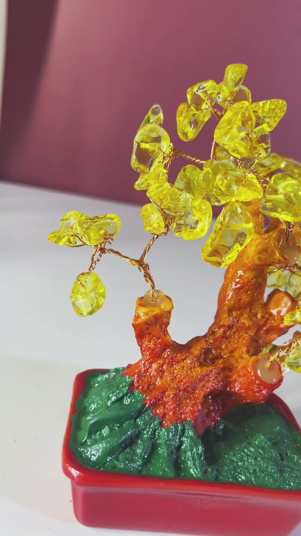 Vastu Significance & Placement: Citrine is a powerhouse for financial growth. To maximize its benefits, place this Vastu tree in the South-East corner (the direction of wealth) or the North-East corner of your home or office. Placing it on your work desk or near the cash register in a shop is believed to boost sales, clear financial blockages, and foster a successful career.