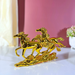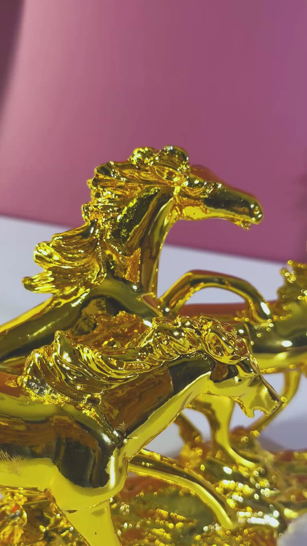Harness the powerful energy of success, speed, and prosperity with this magnificent gold finish Three Running Horses statue. Expertly crafted from high-quality resin, this dynamic figurine captures the breathtaking motion and grace of horses in full stride, symbolizing strength, freedom, and unstoppable progress. The luxurious gold finish adds opulence and elegance, making it a standout decor piece that blends aesthetic appeal with deep symbolic meaning.